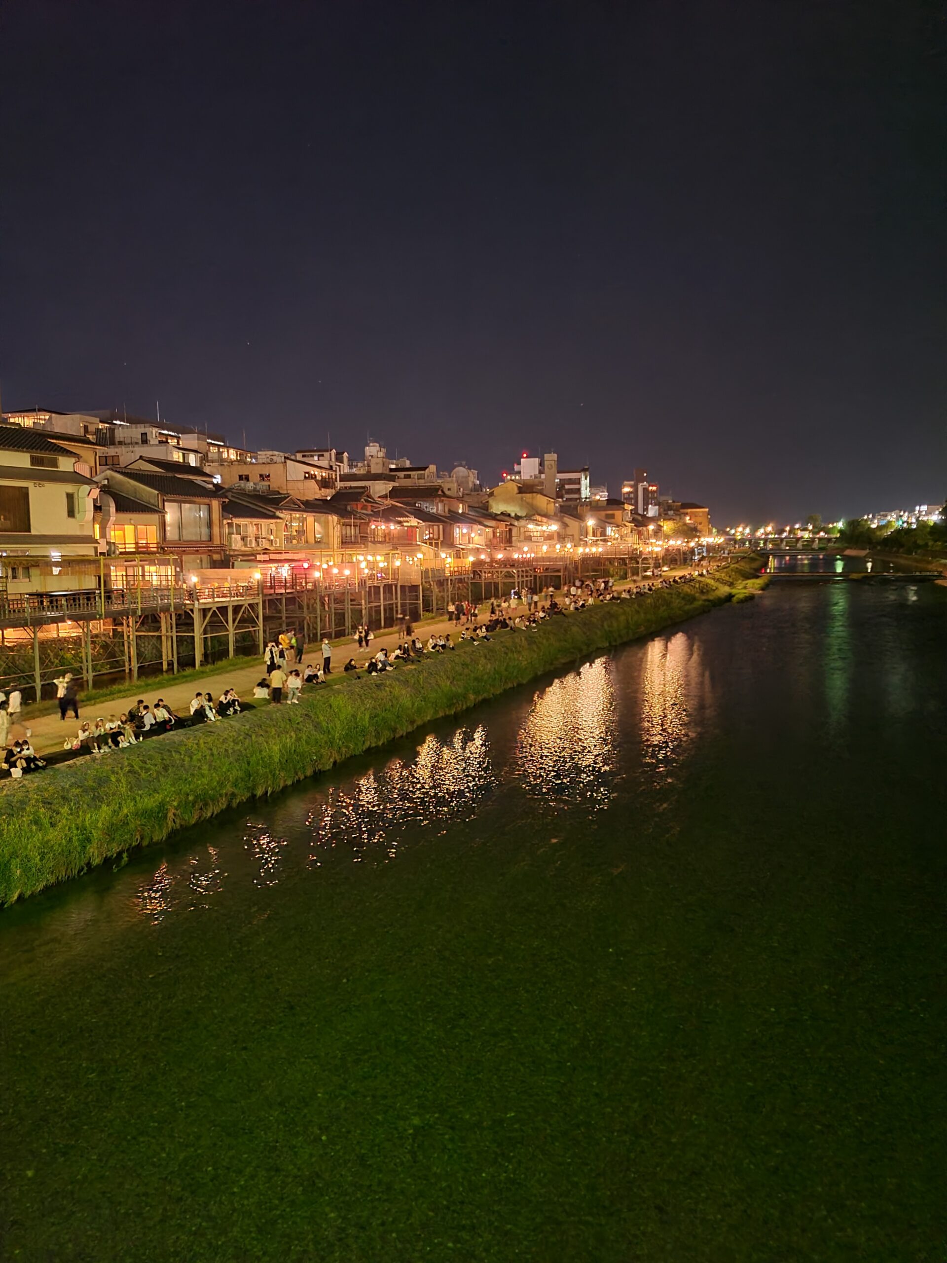1番と言ってもいいぐらい楽しみにしていた鴨川の納涼。9月下旬で風が強かったこともあり、やや寒かったため長袖で。京都湯葉のコース料理を鴨川を眺めながら楽しみます。鴨川では川のそばで飲んでいる人ばかり、いろんな人がいろんな形で鴨川とお酒を楽しみます。そして、近くにサックスを弾いているお兄さん、なかなか上手でより一層雰囲気を良くしてくれていました。http://pontocho-daitoryo.com/access.html https://www.kyoto-yuka.com/
